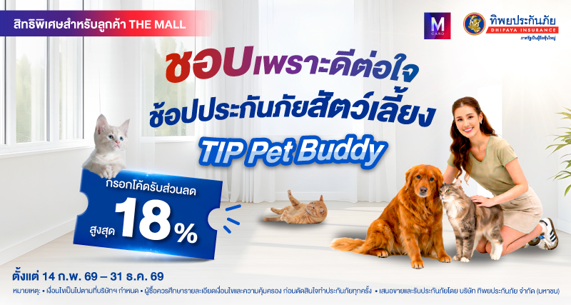 สิทธิพิเศษ ลูกค้า THE MALL รับส่วนลดประกันภัยสัตว์เลี้ยง TIP PET BUDDY 18%